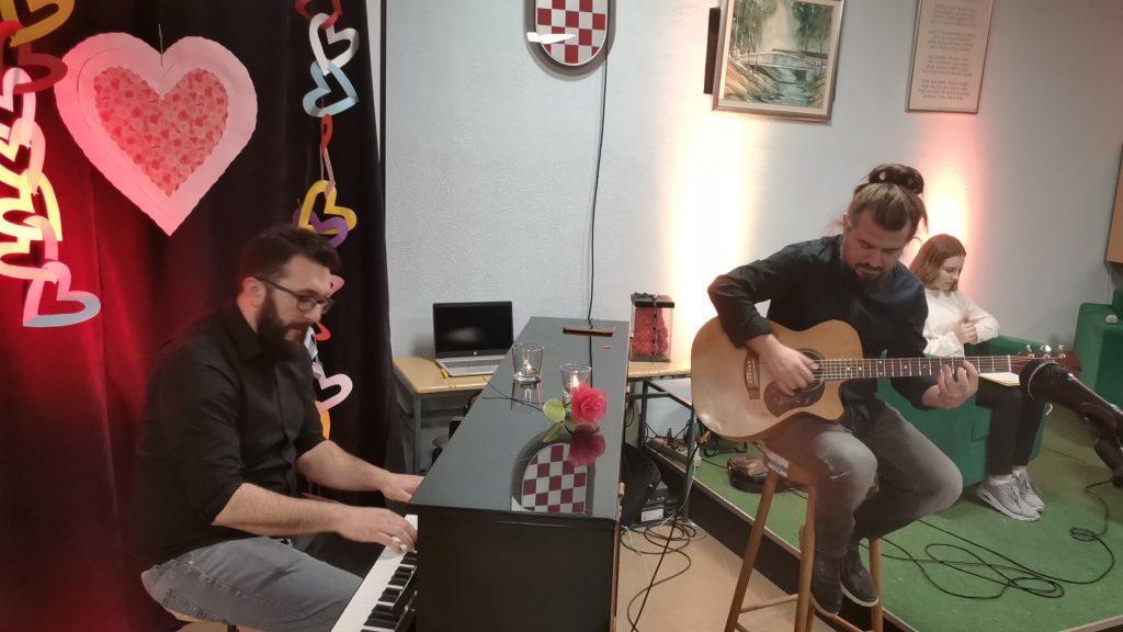 Valentinovsku večer poezije na koncu su s nekoliko izvedenih hitova, nikad prežaljenog Oliver Dragojevića, kraju priveli učitelj glazbenog Branimir Medarić na akustičnoj gitari i kao specijalni večerašnji gost Šime Milovac na klavijaturama.