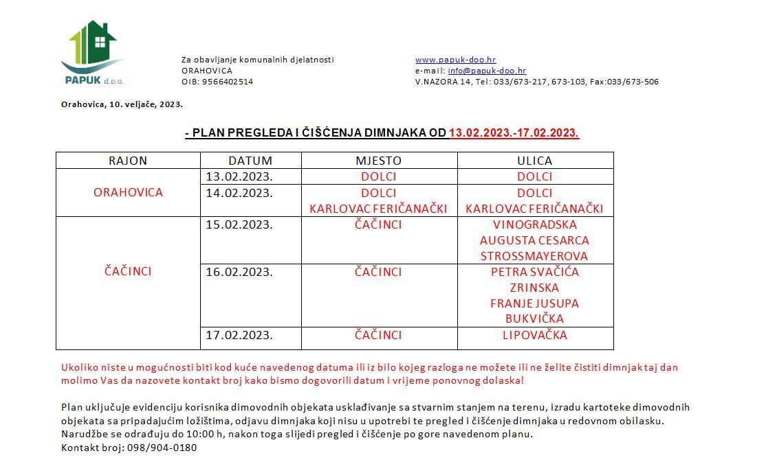 Čačinci Orahovica Plan pregleda i čišćenja dimnjaka na području Orahovice i Čačinaca od 13.-17. veljače radio orahovica 11. veljače 2023. About Post Author radio orahovica See author's posts Continue Reading Previous: Gasi se UDHOS OrahovicaNext: Papuk bolji od FEŠK-a, novi ispit sutra protiv DOŠK-a Related Stories Čačinci Mještanke općine Čačinci velikim odazivom podržale inicijativu “Mama, budi zdrava” radio orahovica 25. listopada 2025. Čačinci Obavijesti Poduzeće Papuk d.o.o.: Plan čišćenja dimnjaka od 20. do 24. listopada 2025. radio orahovica 25. listopada 2025. Čačinci Čačinci ponovno dobivaju stalnog liječnika obiteljske medicine radio orahovica 24. listopada 2025.