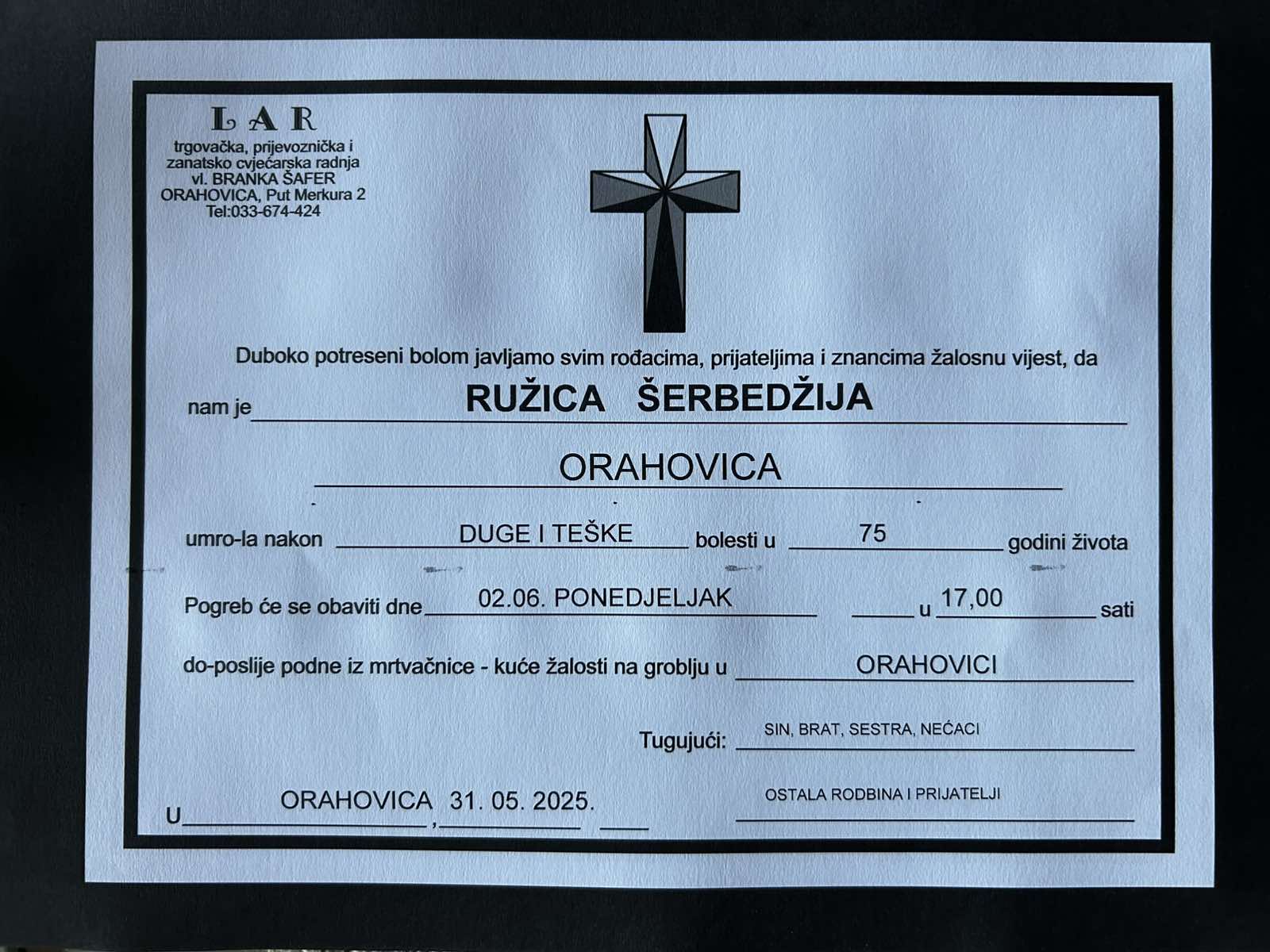 Posljednji pozdrav Posljednji pozdrav radio orahovica 31. svibnja 2025. About Post Author radio orahovica See author's posts Continue Reading Previous: Prljavo kazalište obilježilo Dan državnosti na 57. Orahovačkom proljećuNext: Posljednji pozdrav Related Stories Posljednji pozdrav Posljednji pozdrav radio orahovica 13. travnja 2026. Posljednji pozdrav Posljednji pozdrav i vječni mir radio orahovica 12. travnja 2026. Posljednji pozdrav Posljednji pozdrava radio orahovica 12. travnja 2026.