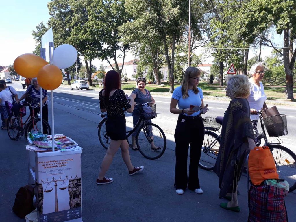 Javna akcija održana je s ciljem informiranja javnosti o sustavu podrške žrtvama i svjedocima kaznenih djela i prekršaja u Republici Hrvatskoj, odnosno o radu Mreže podrške i suradnje za žrtve i svjedoke kaznenih djela, kao i drugih programa i projekata udruge S.O.S. Virovitica.
